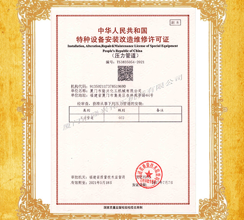 廈門隆興化工機械有限公司成立于2001年5月,占地面積30000平方米,擁有生產車間面積10000平方米及相關配套的辦公場所3000平方米,其中下料場所1000平方米,不銹鋼制作場所2000平方米,ASME產品制作區域1200平方米,無損曝光室30平方米。公司有職工135人,擁有專業的技術人員和管理人員36人。公司主要從事設計、制造A2級覆蓋D類壓力容器...